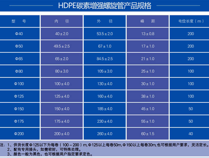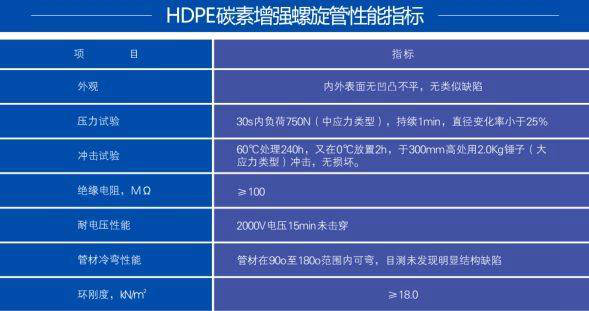 1.耐冲压、耐冲压击:由于管材是螺旋形状,环钢度高,可绕曲性好,能有效地承受外来负荷,不易变形,具有独特的螺纺缓冲特性。